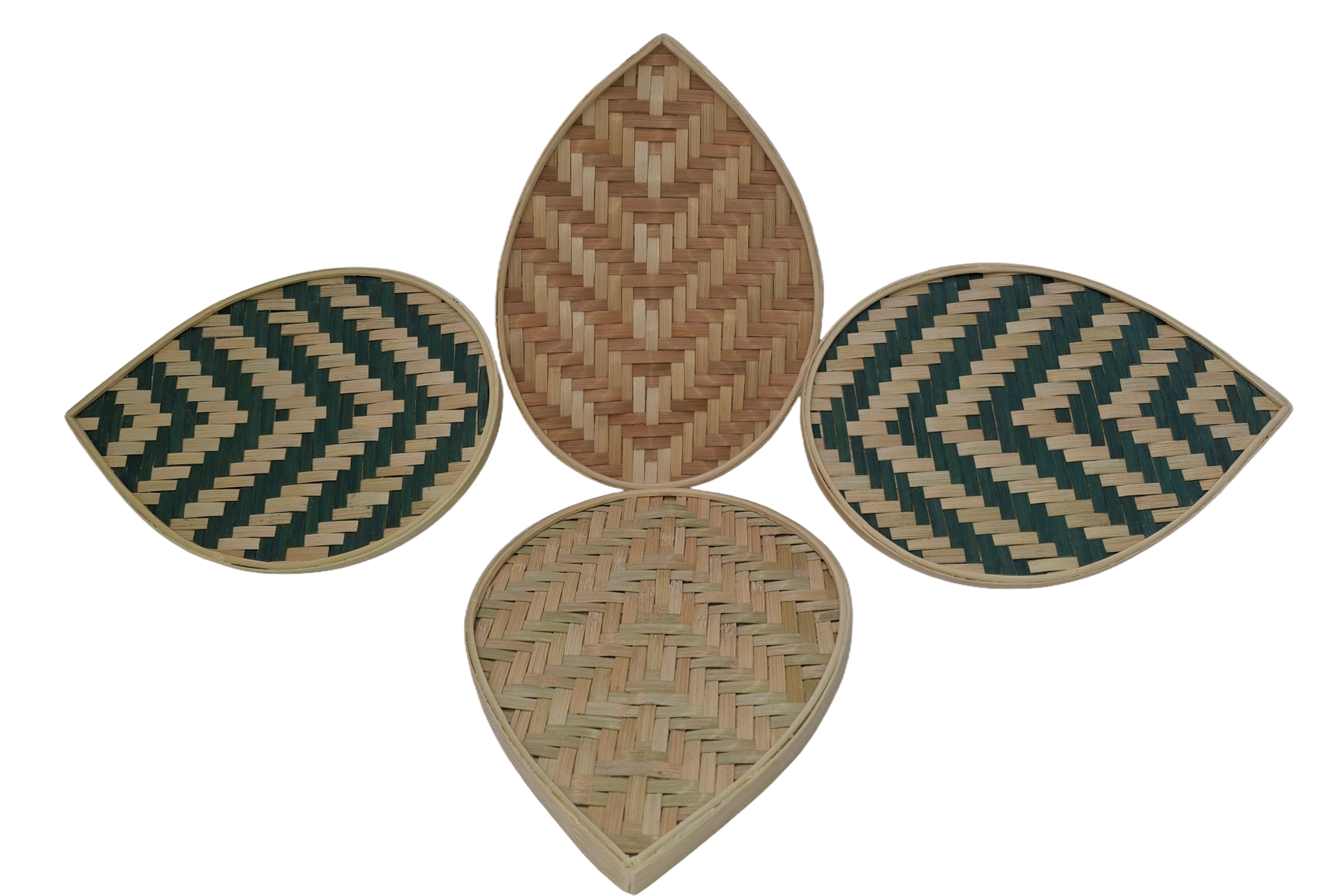 این دیوارکوب متشکل از یک حلقه بشکل برگ بعنوان قاب و یک صفحه بافته شده در انواع طرح و رنگ، همگی از جنس بامبو است که می توان از آن برای تزئین فضای منزل و محیط کاری بهره برد.