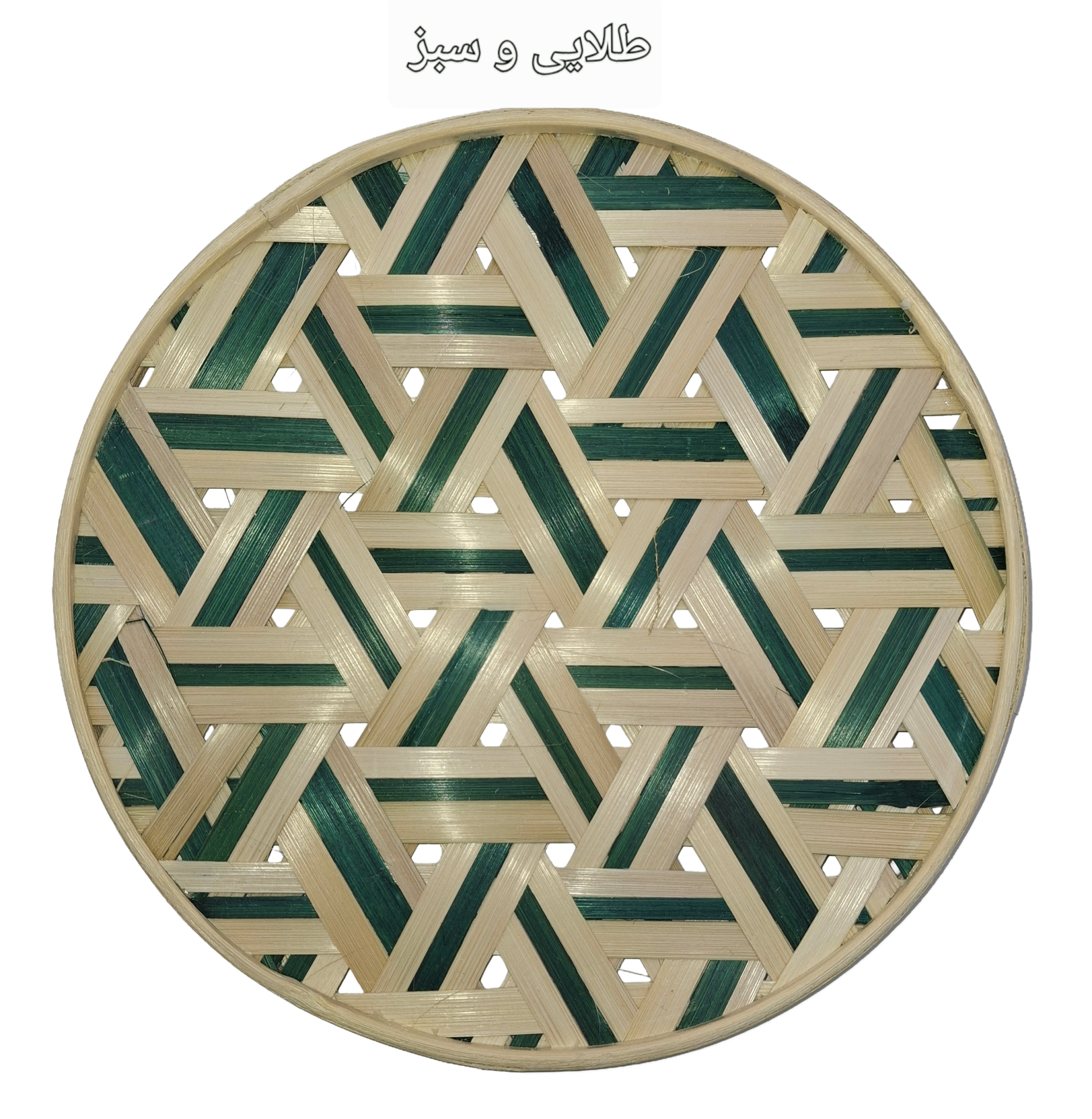 این دیوارکوب متشکل از یک حلقه دایره ای بعنوان قاب و یک صفحه بافته شده در انواع طرح و رنگ، همگی از جنس بامبو است که می توان از آن برای تزئین فضای منزل و محیط کاری بهره برد.