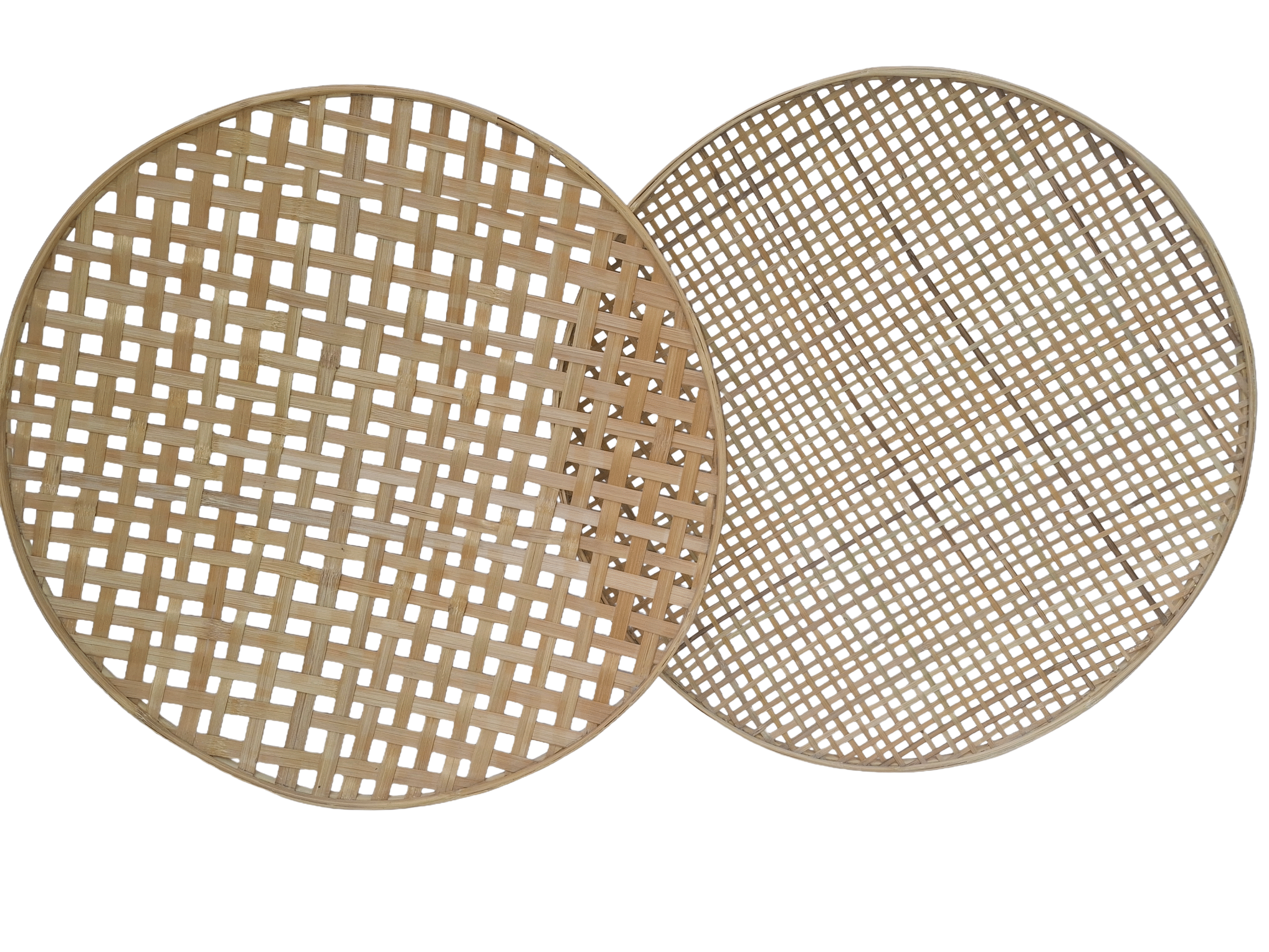 این دیوارکوب متشکل از یک حلقه دایره ای بعنوان قاب و یک صفحه بافته شده در انواع طرح و رنگ، همگی از جنس بامبو است که می توان از آن برای تزئین فضای منزل و محیط کاری بهره برد.