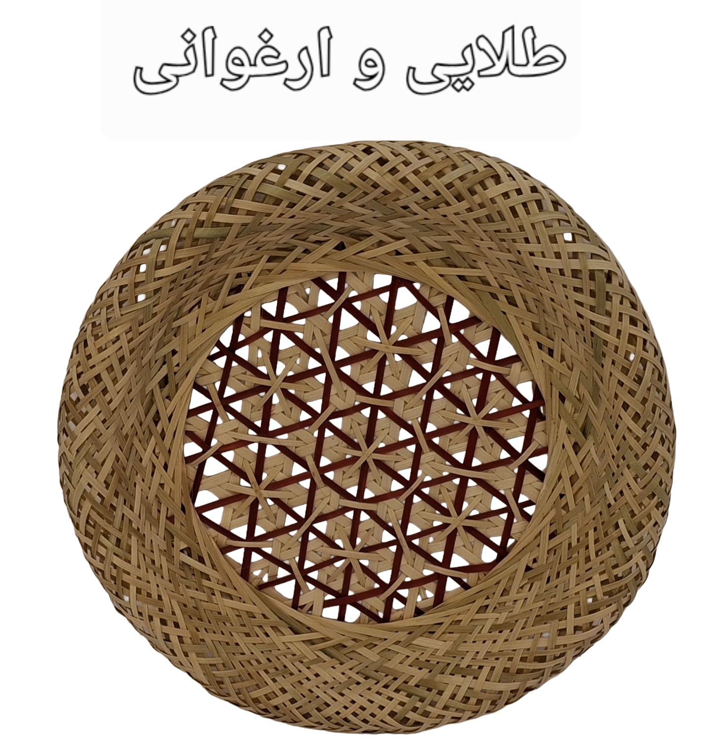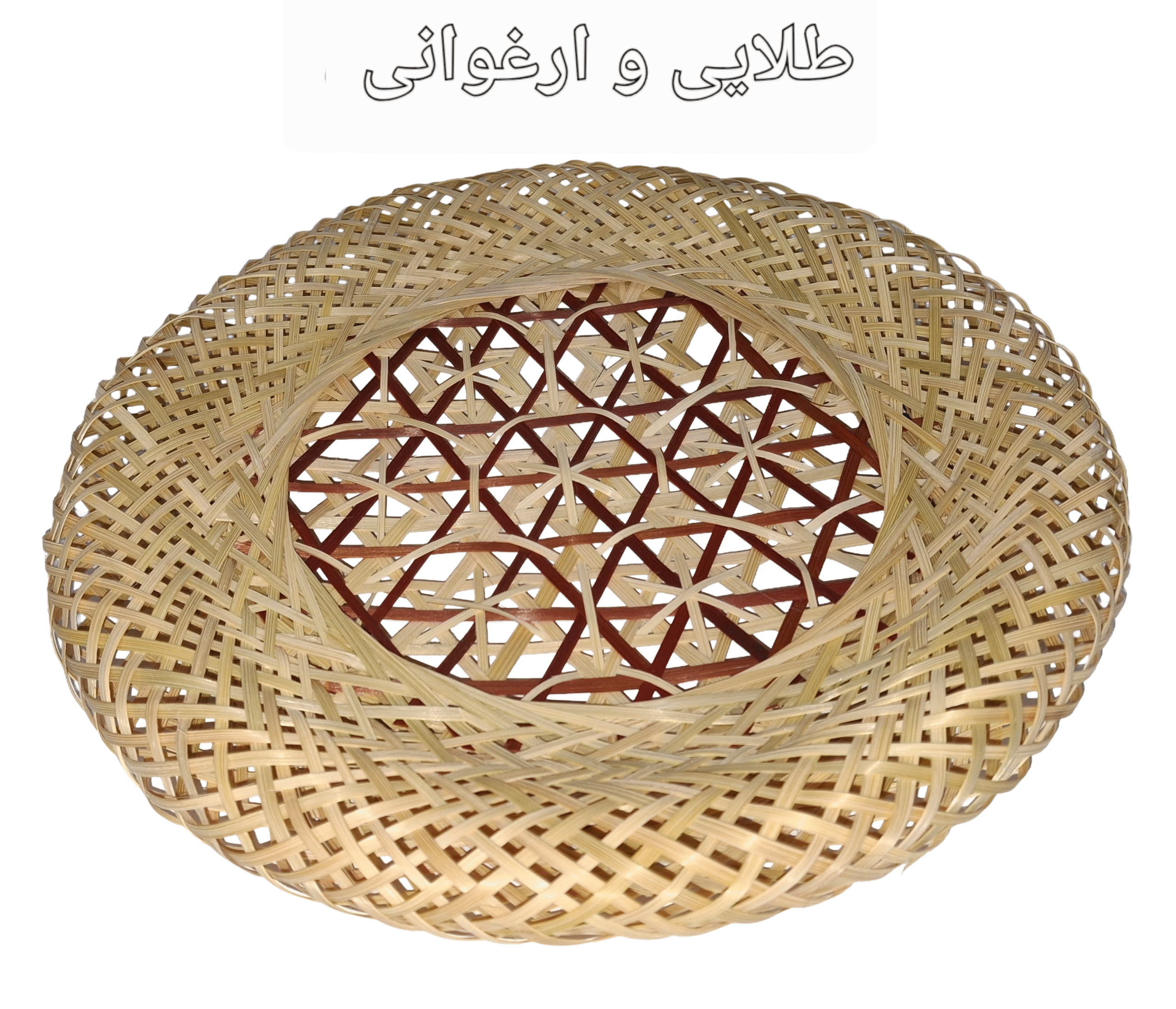 این محصول متشکل از یک قاب دایره ای شکل با لبه ای تا شده و منحنی و یک محصول بافته شده در طرح های و رنگهای مختلف در مرکز آن که کلاً از الیاف بامبو تشکیل شده و مناسب برای تزئین فضای داخلی ساختمان میباشد.