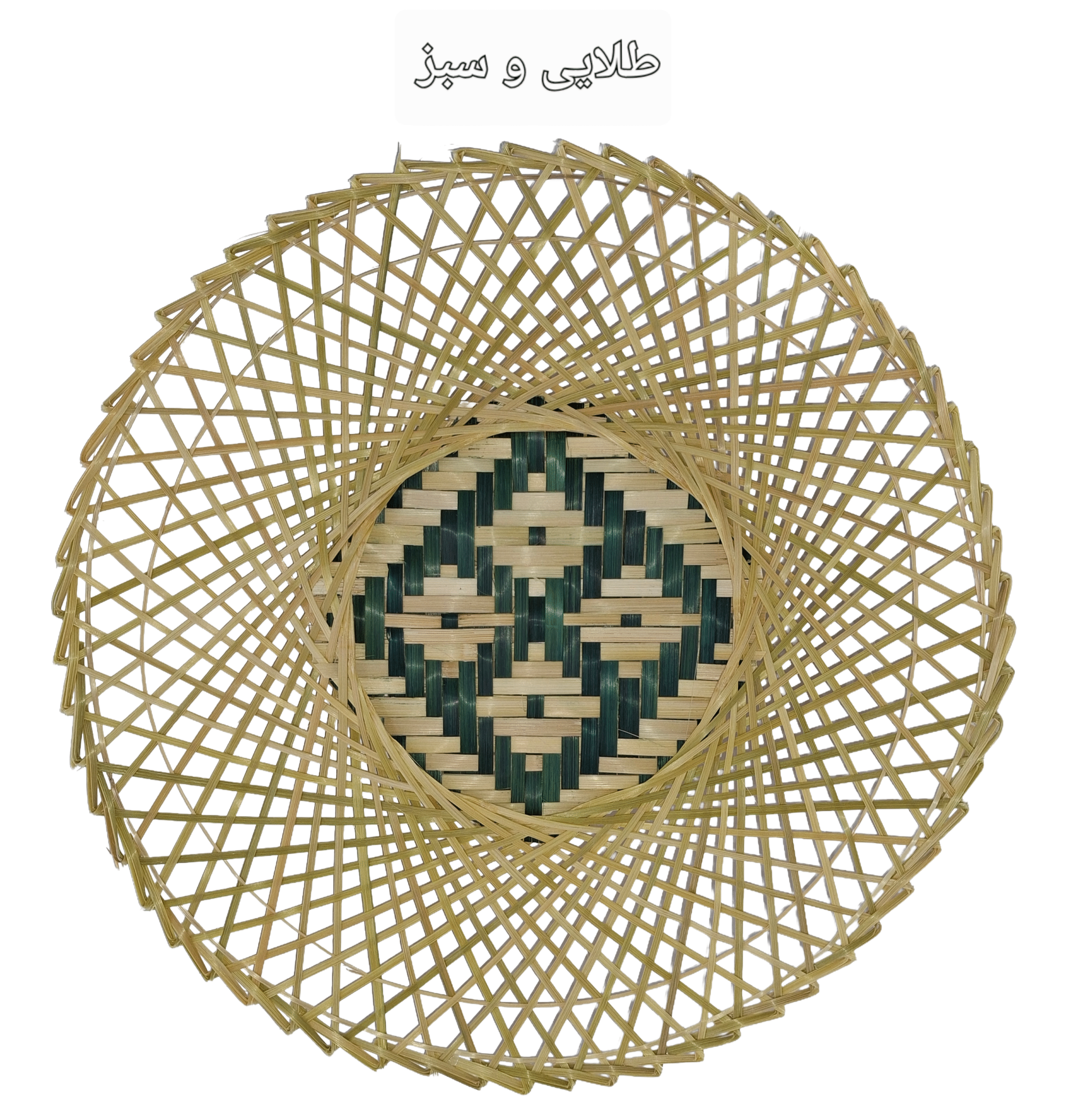 محصولی متشکل از یک صفحه دایره‌ ای بامبو بافت در انواع و طح و رنگ در مرکز و یک قاب از نوارهای بامبو که مناسب برای تزئین دکوراسیون و فضای داخلی ساختمان میباشد‌